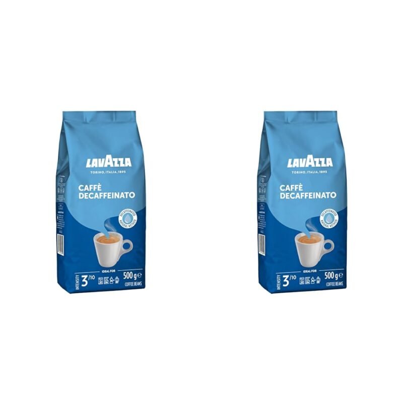 Lavazza, Caffè Decaffeinato, Decaffeinated Arabica and Robusta Coffee Beans, Coffee with Almond and Honey Aroma, Intensity 3/10, Medium Roast, 500 g (Pack of 2)